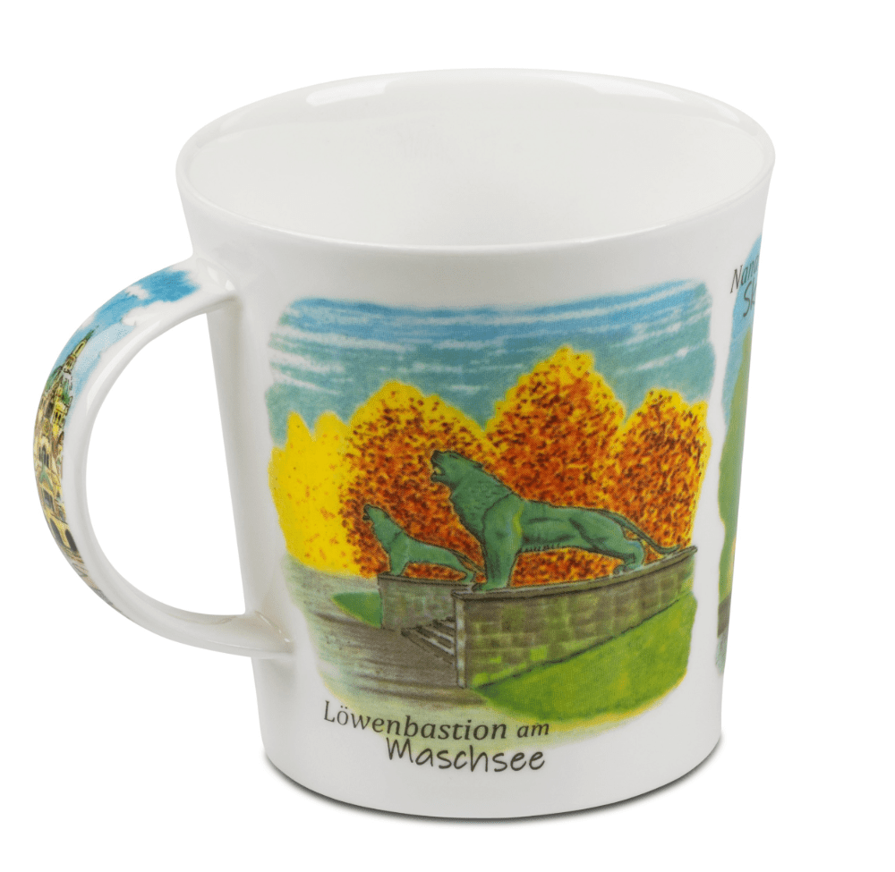 Gefertigt aus feinstem Bone China in England, verbindet die Tasse elegante Leichtigkeit mit hoher Alltagstauglichkeit. Die Lomond-Form liegt durch ihren ausgewogenen Henkel ergonomisch in der Hand und wirkt zugleich modern und zeitlos. Mit 0,32 l Fassungsvermögen bietet der Becher die ideale Größe für Kaffee, Tee und Heißgetränke jeder Art – ob am Frühstückstisch, im Büro oder als Erinnerungsstück an die Stadt.